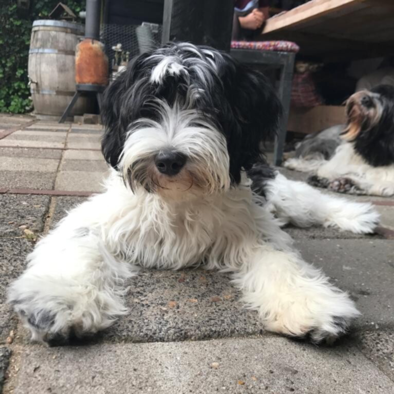 Babbe is de grootste kroelerd onder de schapendoezen. Ontzettend lief, en aanhankelijk. Een beetje flauw, maar daar kan ze niks aan doen. Ze is de liefste tante voor de pups die je maar kan wensen en speelt net zo hard met ze mee.